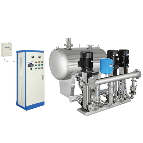- 該設備通過微機控制變頻調速來實現恒壓供水。它根據設定的用水點工作壓力,監測市政管網壓力,當壓力低于所需壓力時,自動控制水泵轉速提高以滿足用水需求。